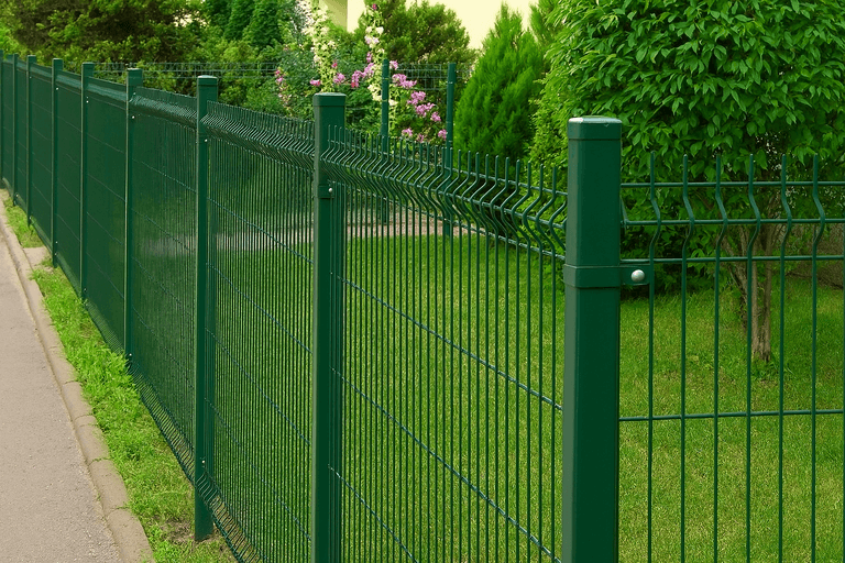 - Тип секций — металлический 3д забор может иметь разную толщину проволоки, размер ячейки и тип покрытия.